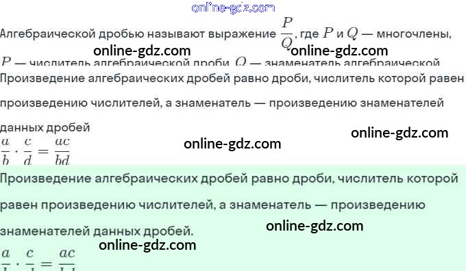 Готовые домашние задания по Алгебре за 8 класс Учебник Мордкович Базовый уровень 2017 - §5. Умножение и деление алгебраических дробей. 1