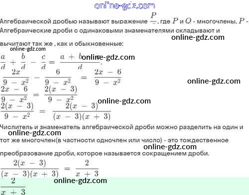 §3. Сложение и вычитание алгебраических дробей с одинаковыми знаменателями