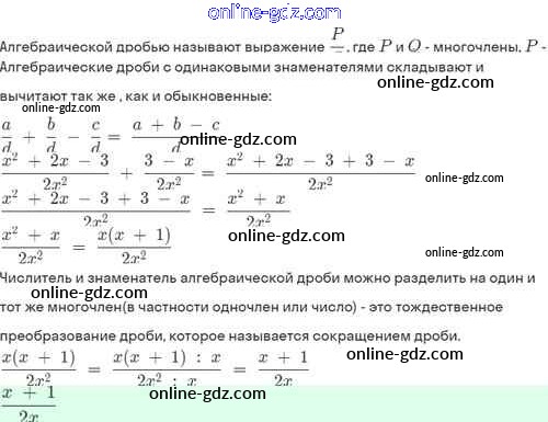 §3. Сложение и вычитание алгебраических дробей с одинаковыми знаменателями