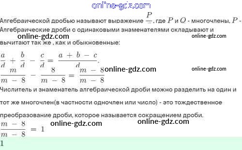 §3. Сложение и вычитание алгебраических дробей с одинаковыми знаменателями