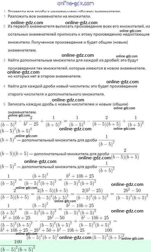 Готовые домашние задания по Алгебре за 8 класс Задачник Мордкович, Александрова Базовый уровень 2021 - §4. Сложение и вычитание алгебраических дробей с разными знаменателями 4.52
