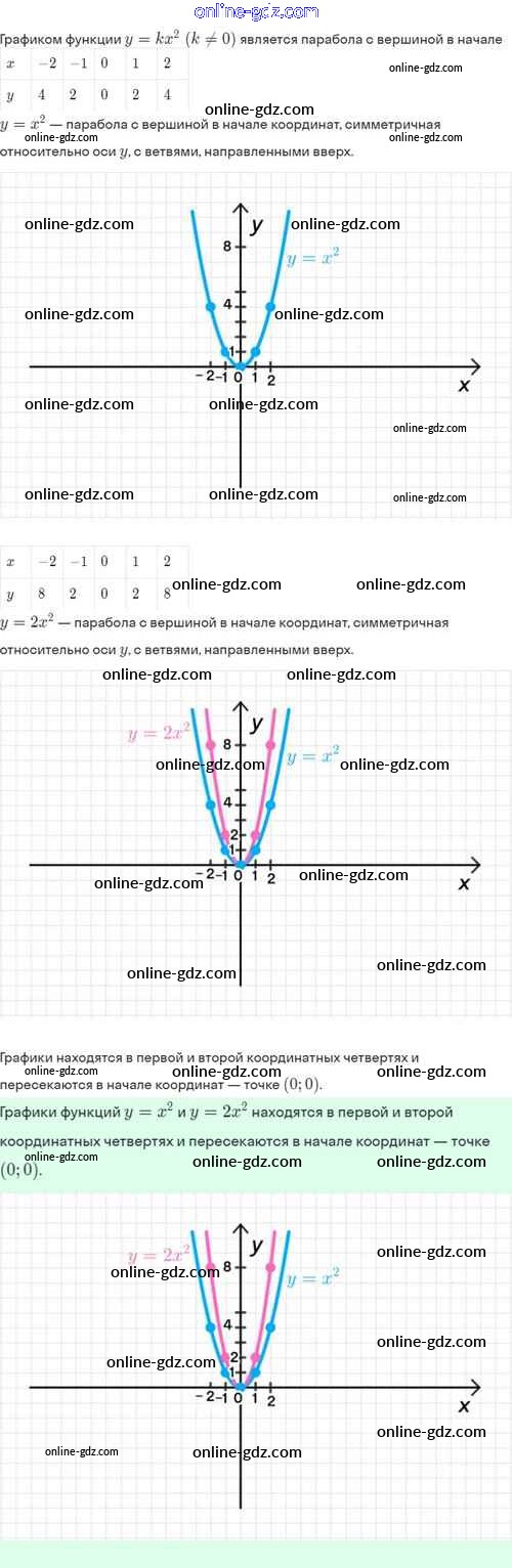 Готовые домашние задания по Алгебре за 8 класс Задачник Мордкович, Александрова Базовый уровень 2021 - §19. Функция y=kx², её свойства и график 19.7