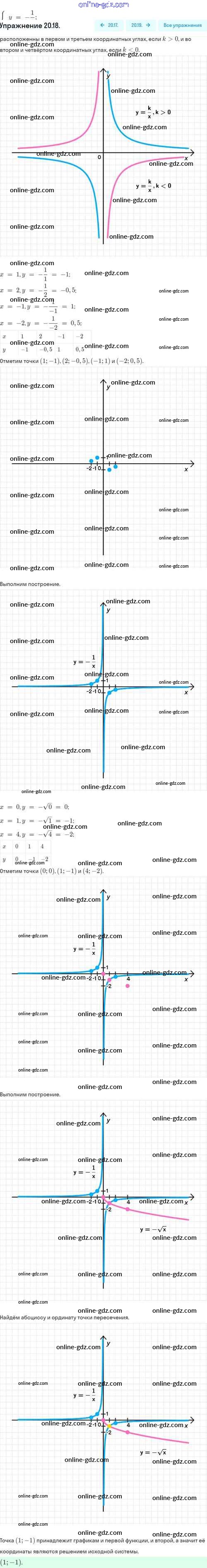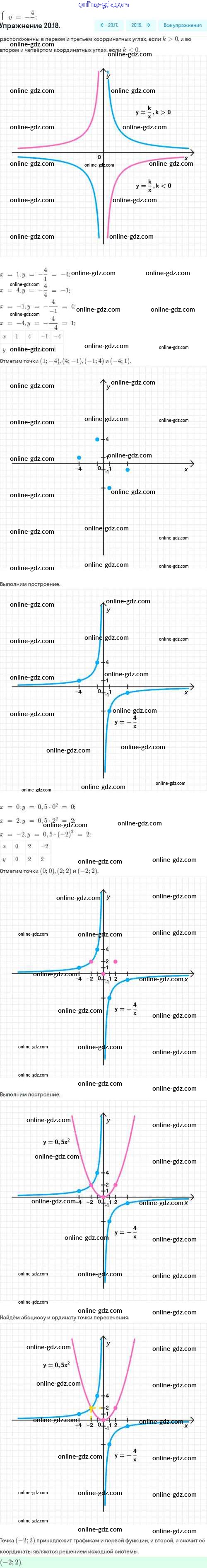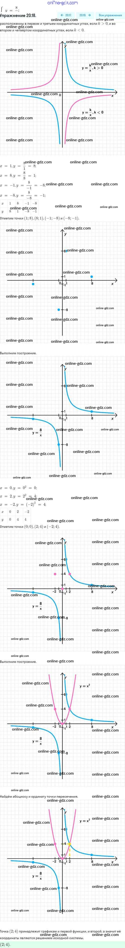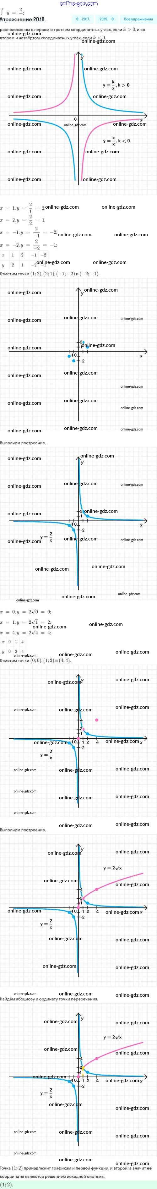 Готовые домашние задания по Алгебре за 8 класс Задачник Мордкович, Александрова Базовый уровень 2021 - §20. Функция y=k/x, её свойства и график 20.18
