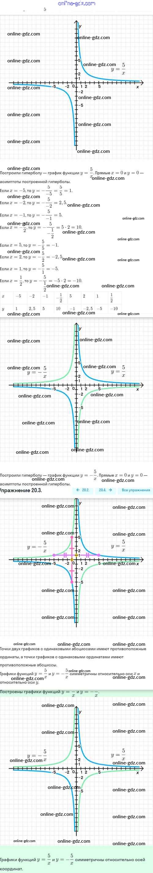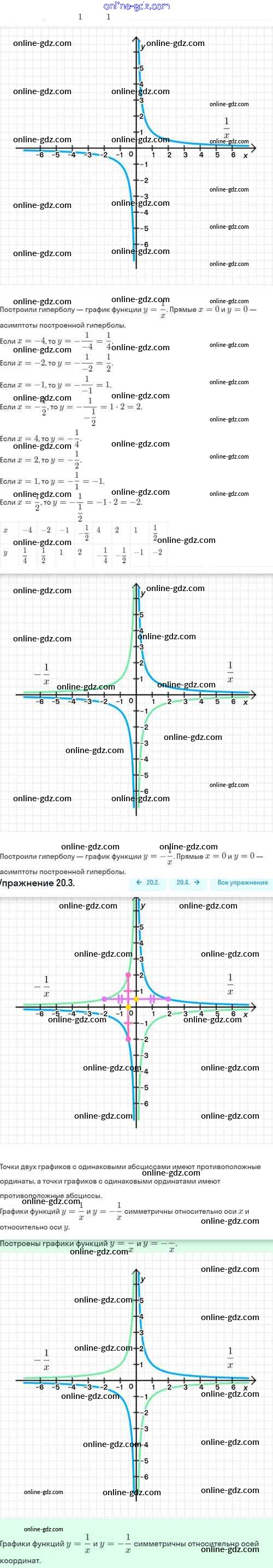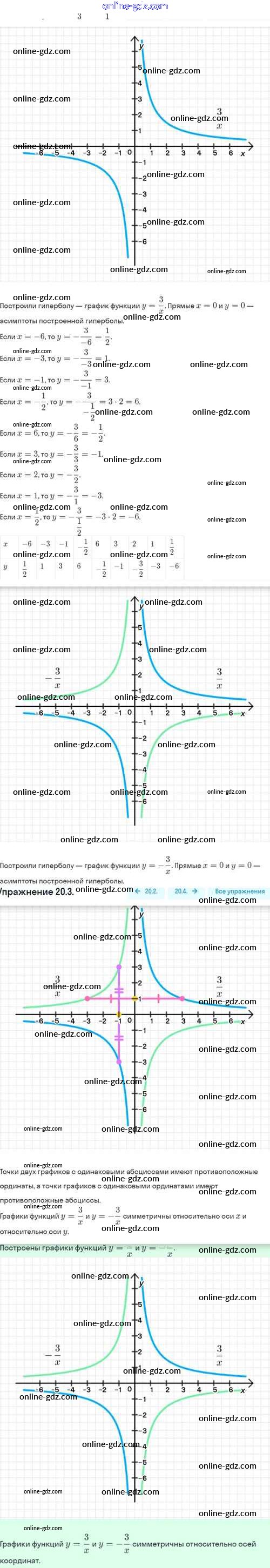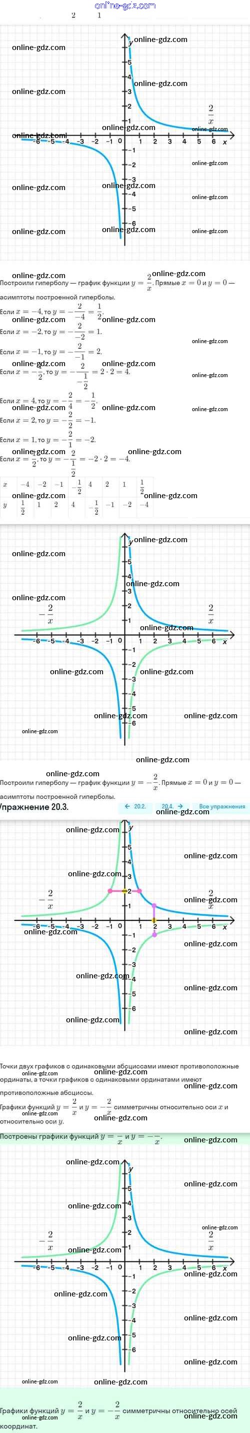 Готовые домашние задания по Алгебре за 8 класс Задачник Мордкович, Александрова Базовый уровень 2021 - §20. Функция y=k/x, её свойства и график 20.3
