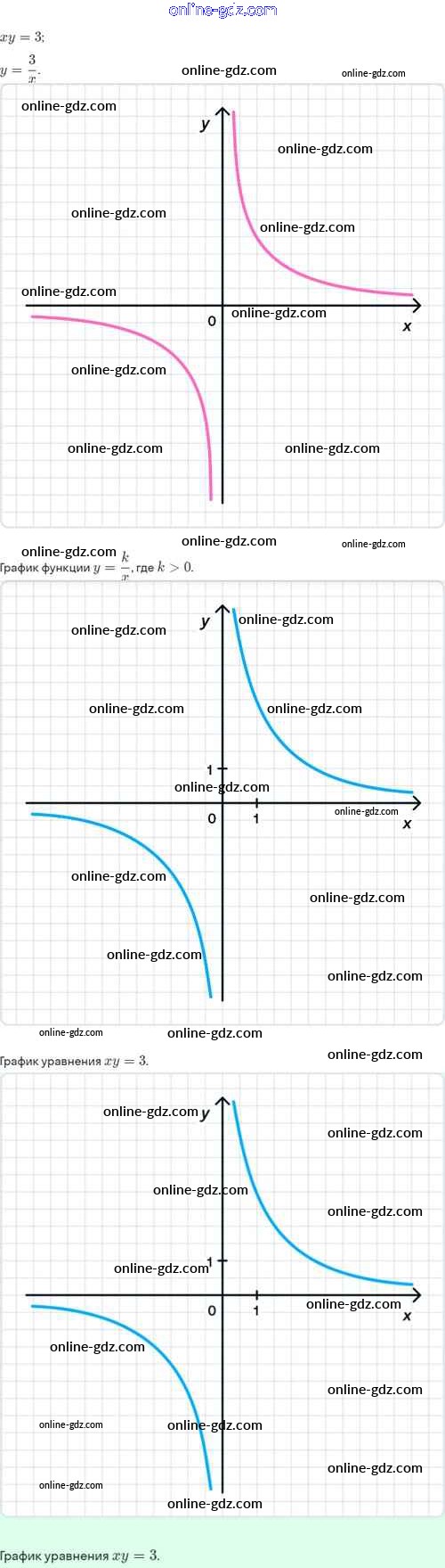 Готовые домашние задания по Алгебре за 8 класс Задачник Мордкович, Александрова Базовый уровень 2021 - §20. Функция y=k/x, её свойства и график 20.38