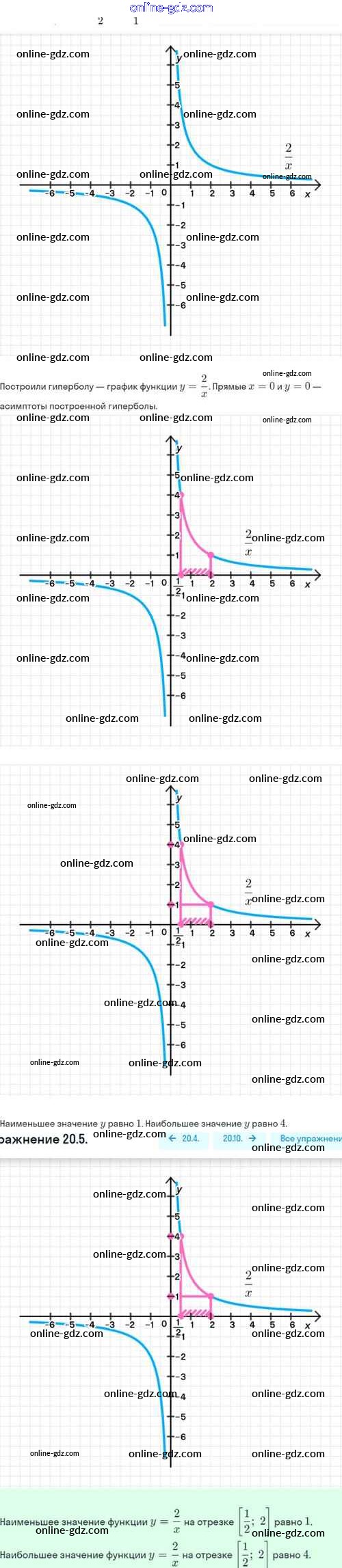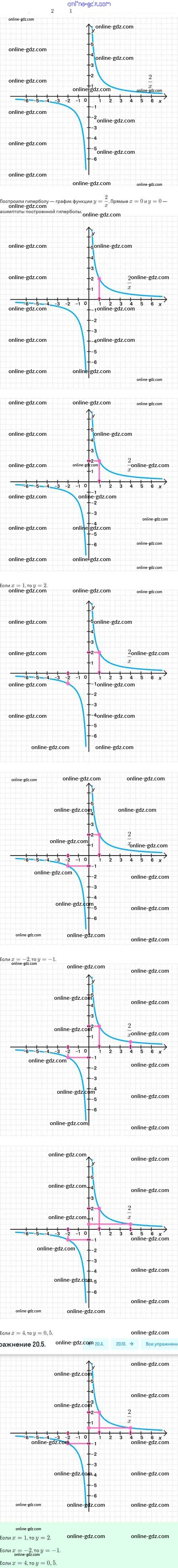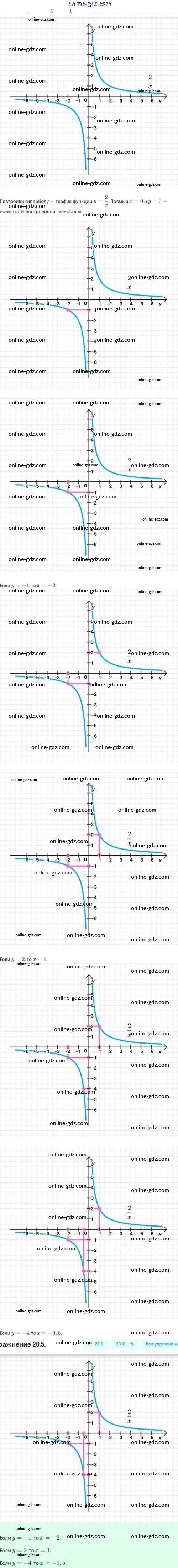 Готовые домашние задания по Алгебре за 8 класс Задачник Мордкович, Александрова Базовый уровень 2021 - §20. Функция y=k/x, её свойства и график 20.5