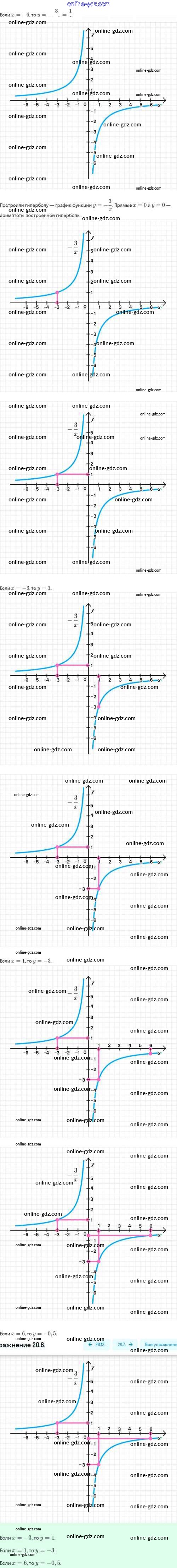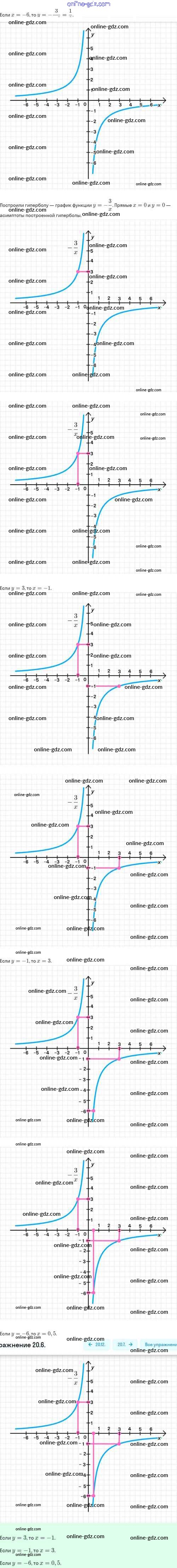 Готовые домашние задания по Алгебре за 8 класс Задачник Мордкович, Александрова Базовый уровень 2021 - §20. Функция y=k/x, её свойства и график 20.6