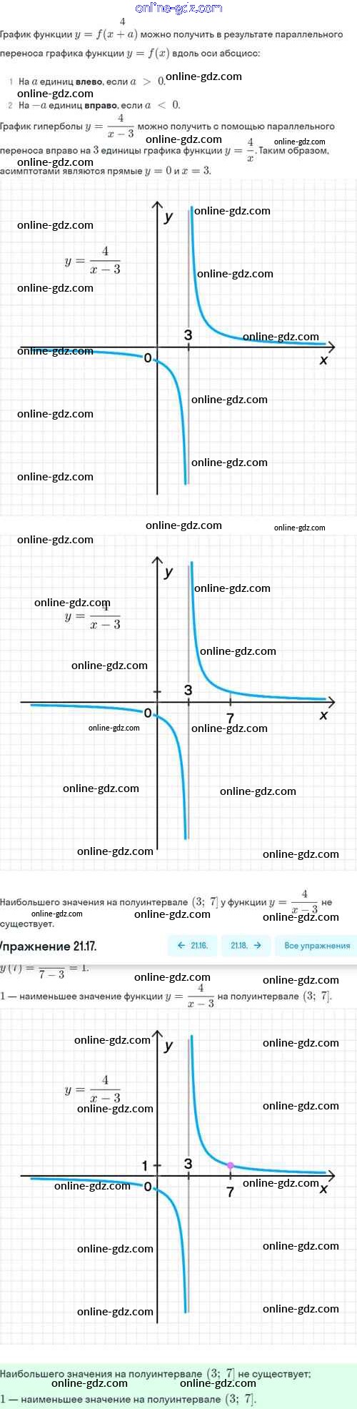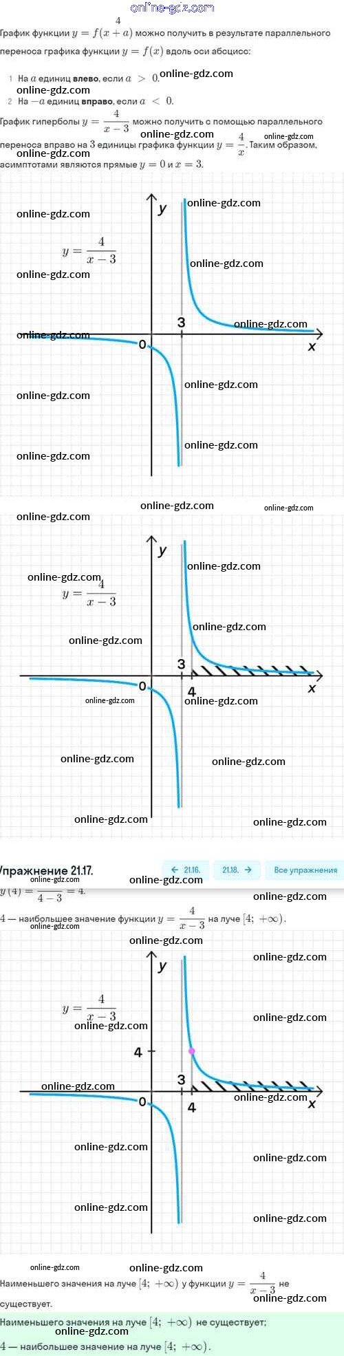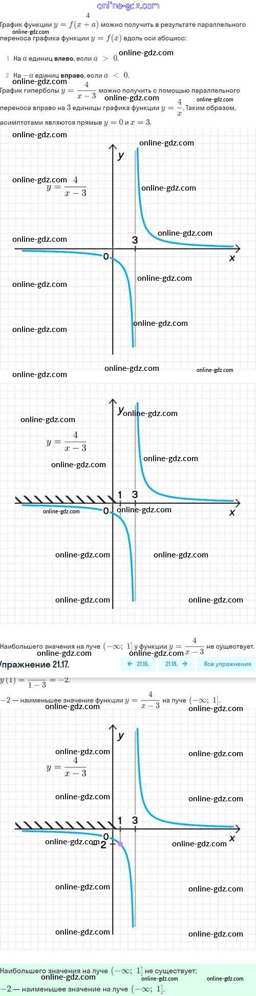 Готовые домашние задания по Алгебре за 8 класс Задачник Мордкович, Александрова Базовый уровень 2021 - §21. Как построить график функции y=f(x+l), если известен график функции y=f(x) 21.17