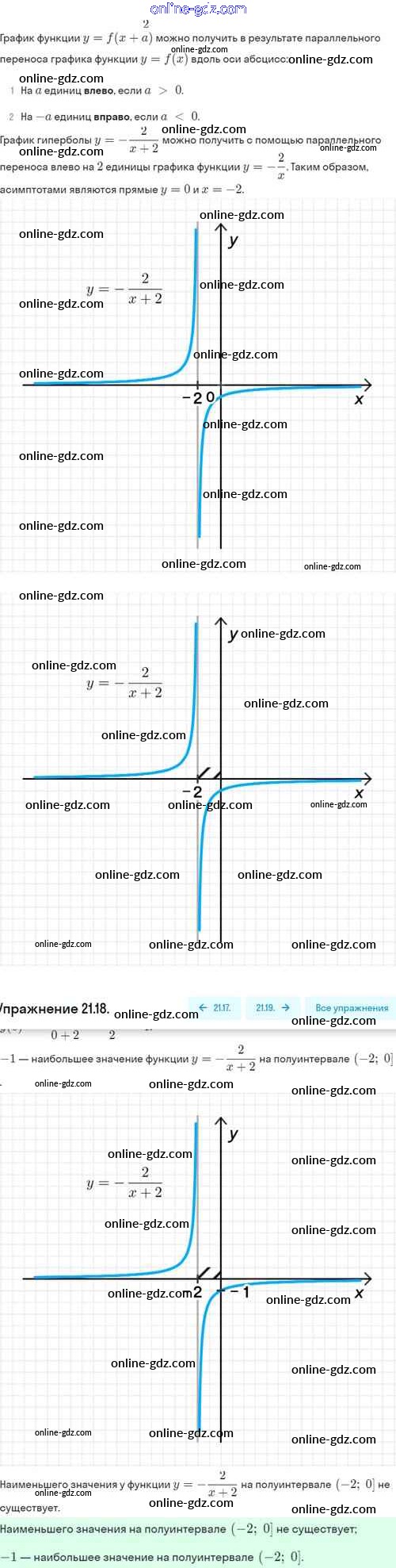Готовые домашние задания по Алгебре за 8 класс Задачник Мордкович, Александрова Базовый уровень 2021 - §21. Как построить график функции y=f(x+l), если известен график функции y=f(x) 21.18