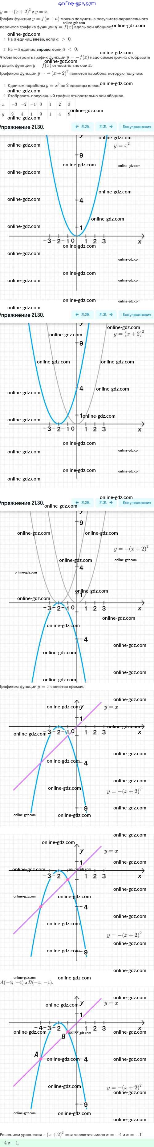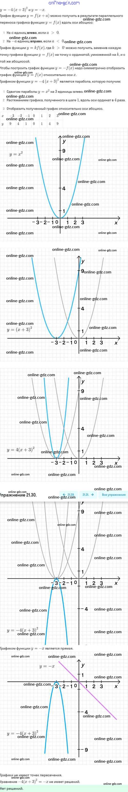 Готовые домашние задания по Алгебре за 8 класс Задачник Мордкович, Александрова Базовый уровень 2021 - §21. Как построить график функции y=f(x+l), если известен график функции y=f(x) 21.30