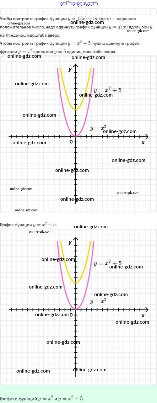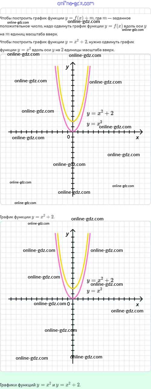 Готовые домашние задания по Алгебре за 8 класс Задачник Мордкович, Александрова Базовый уровень 2021 - §22. Как построить график функции y=f(x)+m, если известен график функции y=f(x) 22.1