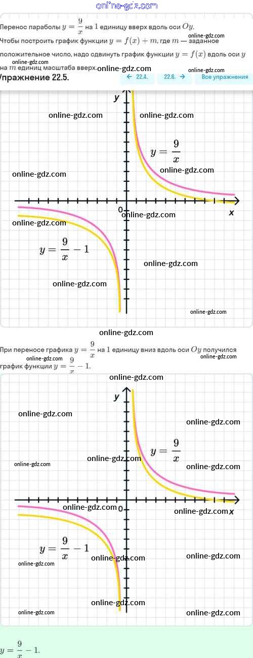 Готовые домашние задания по Алгебре за 8 класс Задачник Мордкович, Александрова Базовый уровень 2021 - §22. Как построить график функции y=f(x)+m, если известен график функции y=f(x) 22.5