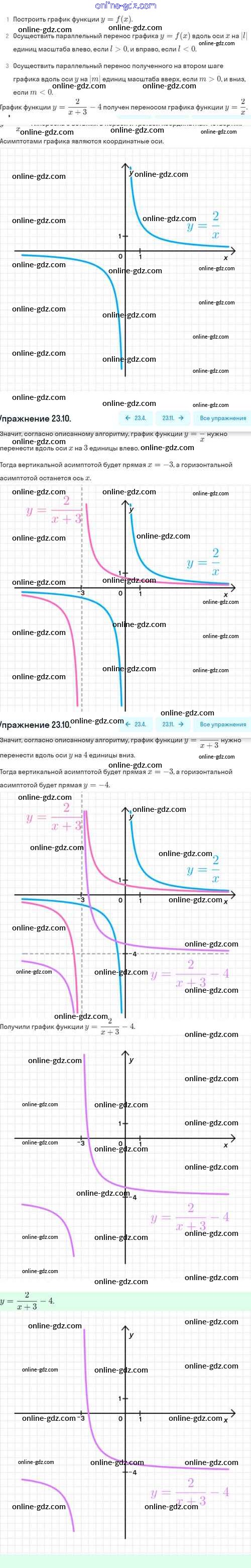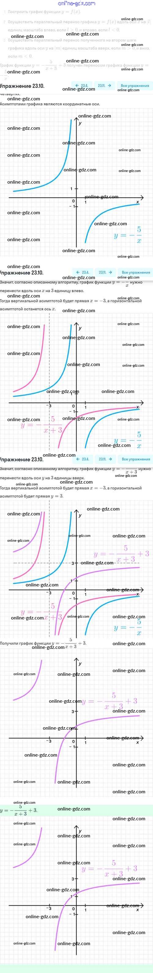 Готовые домашние задания по Алгебре за 8 класс Задачник Мордкович, Александрова Базовый уровень 2021 - §23. Как построить график функции y=f(x+l)+m, если известен график функции y=f(x) 23.10