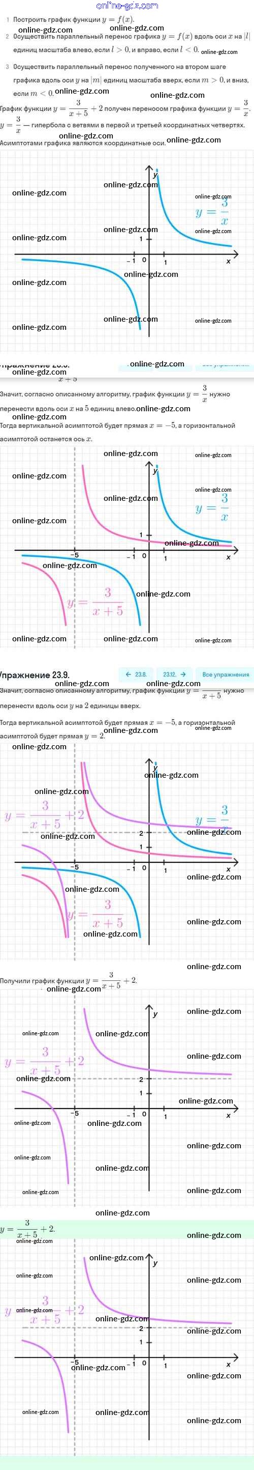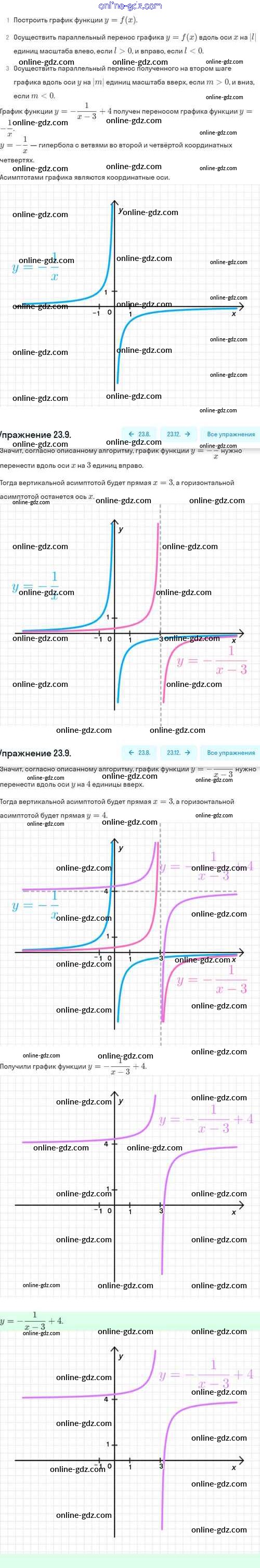 Готовые домашние задания по Алгебре за 8 класс Задачник Мордкович, Александрова Базовый уровень 2021 - §23. Как построить график функции y=f(x+l)+m, если известен график функции y=f(x) 23.9