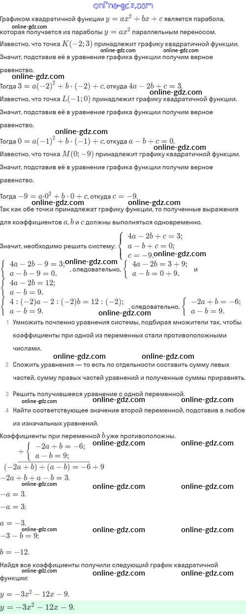 Готовые домашние задания по Алгебре за 8 класс Задачник Мордкович, Александрова Базовый уровень 2021 - §24. Функция y=ax²+bx+c, её свойства и график 24.54