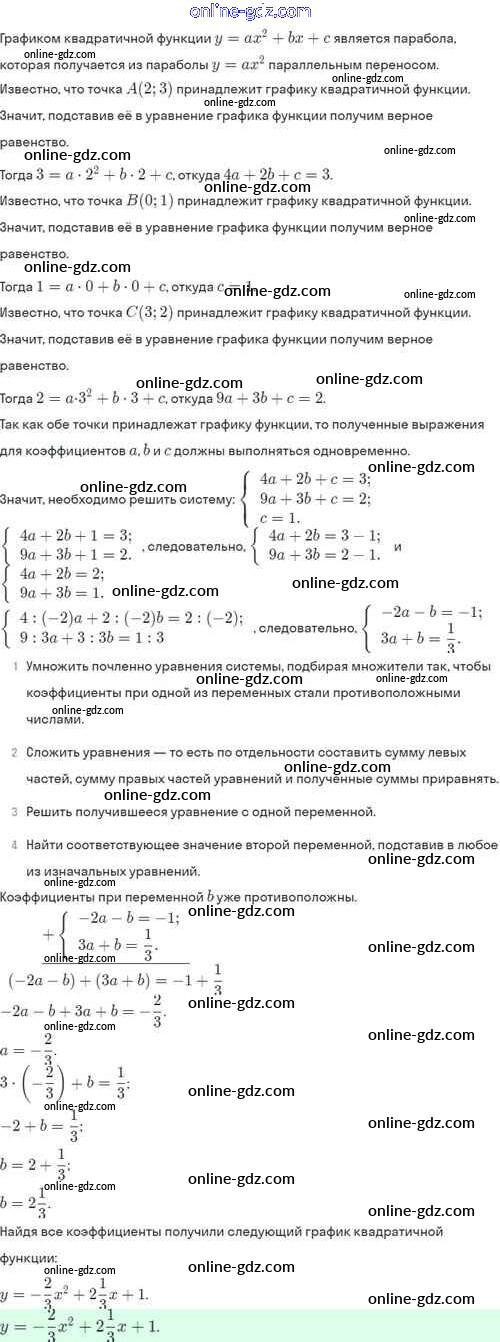 Готовые домашние задания по Алгебре за 8 класс Задачник Мордкович, Александрова Базовый уровень 2021 - §24. Функция y=ax²+bx+c, её свойства и график 24.55