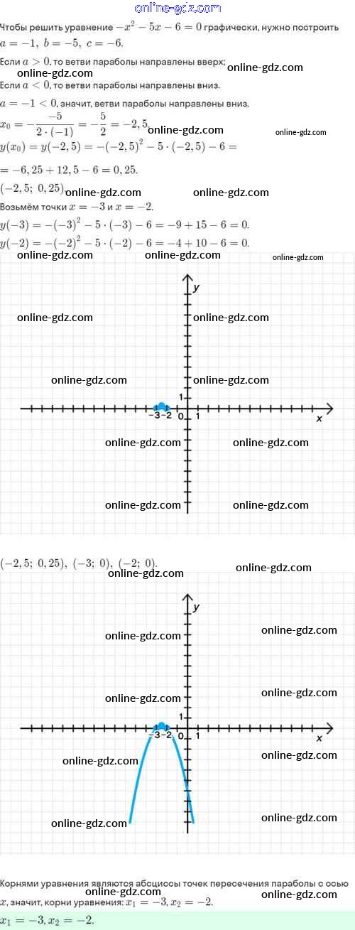 Готовые домашние задания по Алгебре за 8 класс Задачник Мордкович, Александрова Базовый уровень 2021 - §25. Графическое решение квадратных уравнений 25.7