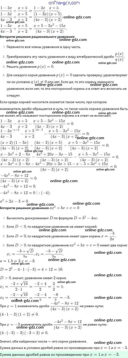 Готовые домашние задания по Алгебре за 8 класс Задачник Мордкович, Александрова Базовый уровень 2021 - §29. Рациональные уравнения 29.13
