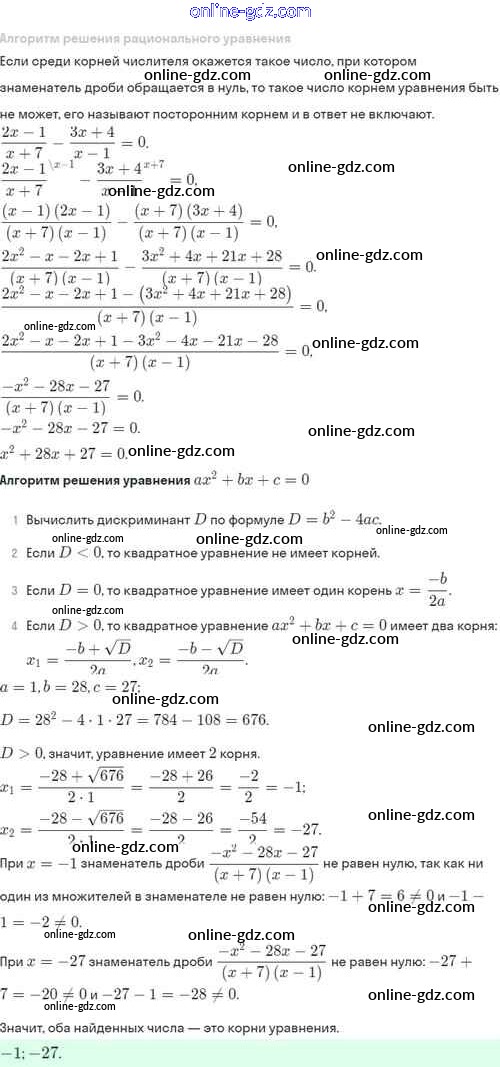 Готовые домашние задания по Алгебре за 8 класс Задачник Мордкович, Александрова Базовый уровень 2021 - §29. Рациональные уравнения 29.7