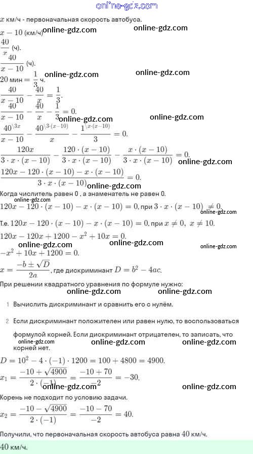 Готовые домашние задания по Алгебре за 8 класс Задачник Мордкович, Александрова Базовый уровень 2021 - §30. Рациональные уравнения как математические модели реальных ситуаций 30.10