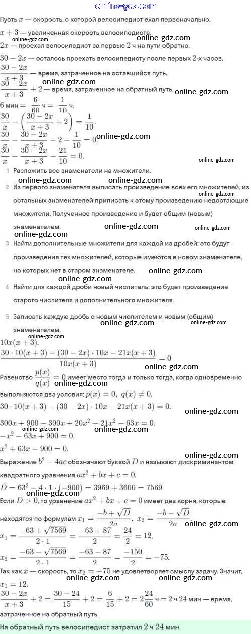Готовые домашние задания по Алгебре за 8 класс Задачник Мордкович, Александрова Базовый уровень 2021 - §30. Рациональные уравнения как математические модели реальных ситуаций 30.33