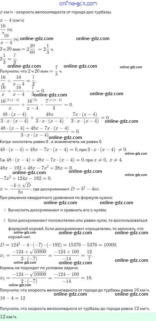 Готовые домашние задания по Алгебре за 8 класс Задачник Мордкович, Александрова Базовый уровень 2021 - §30. Рациональные уравнения как математические модели реальных ситуаций 30.9