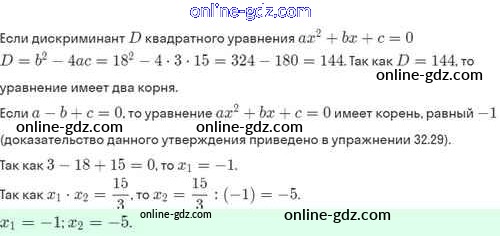 Готовые домашние задания по Алгебре за 8 класс Задачник Мордкович, Александрова Базовый уровень 2021 - §32. Теорема Виета и её применение 32.30