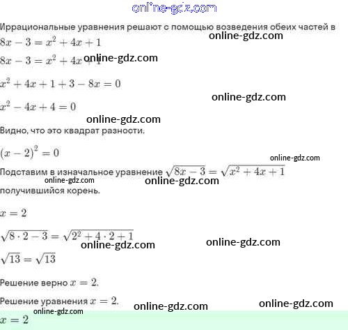 Готовые домашние задания по Алгебре за 8 класс Задачник Мордкович, Александрова Базовый уровень 2021 - §33. Иррациональные уравнения 33.16