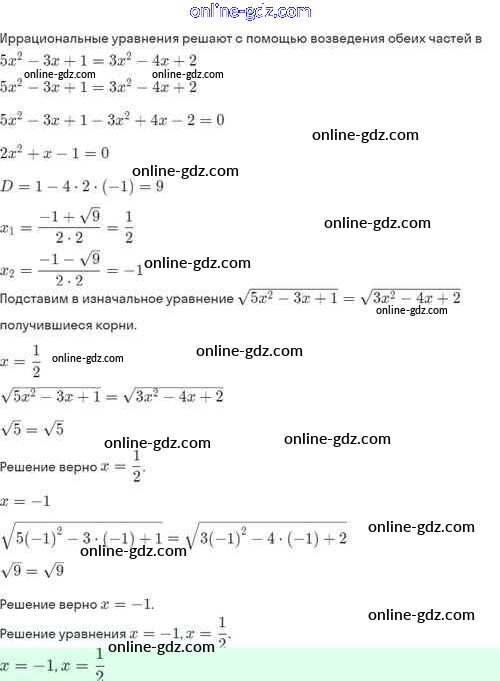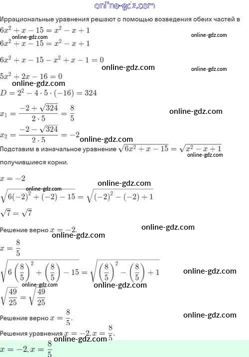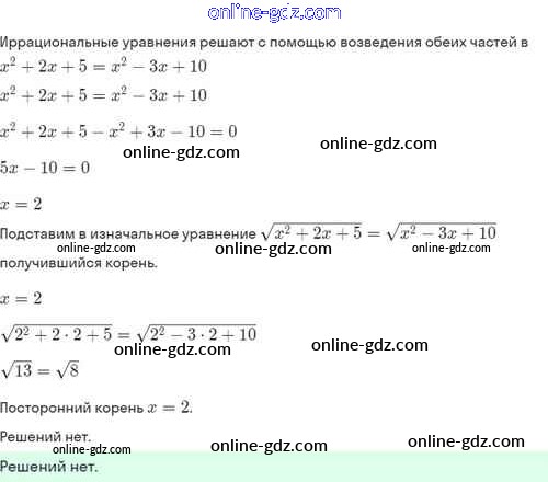 Готовые домашние задания по Алгебре за 8 класс Задачник Мордкович, Александрова Базовый уровень 2021 - §33. Иррациональные уравнения 33.17
