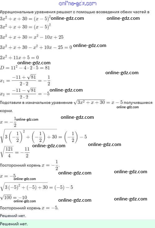 Готовые домашние задания по Алгебре за 8 класс Задачник Мордкович, Александрова Базовый уровень 2021 - §33. Иррациональные уравнения 33.18