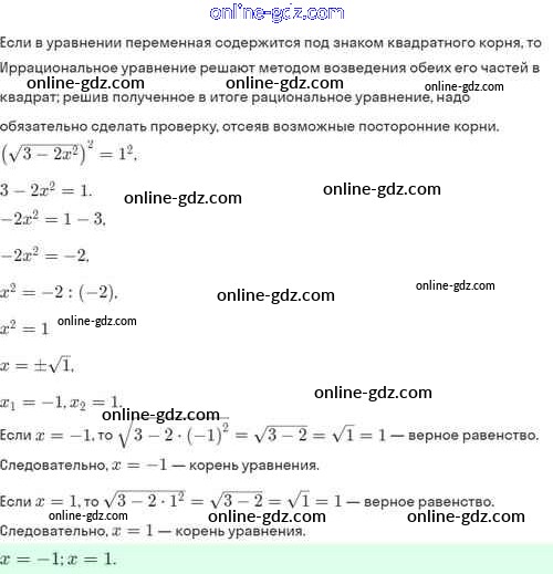 Готовые домашние задания по Алгебре за 8 класс Задачник Мордкович, Александрова Базовый уровень 2021 - §33. Иррациональные уравнения 33.2