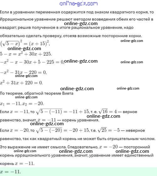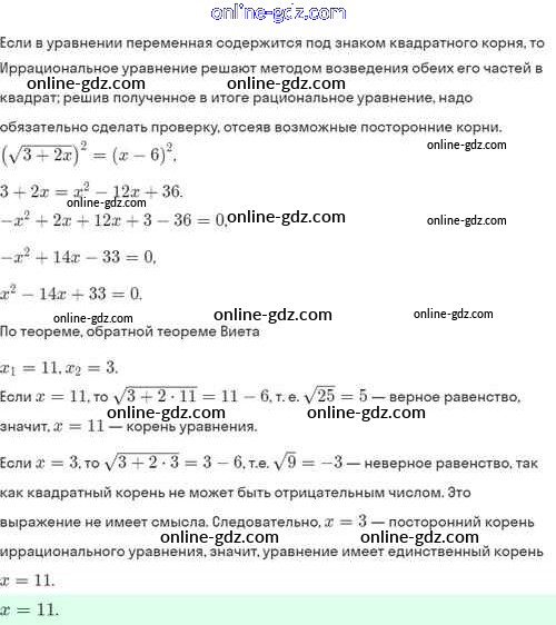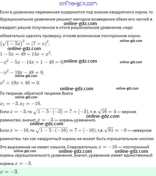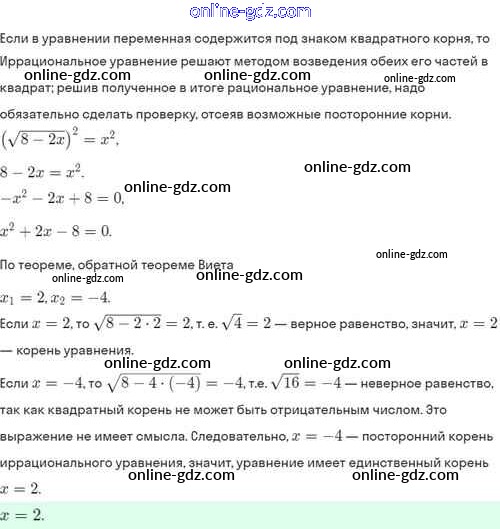 Готовые домашние задания по Алгебре за 8 класс Задачник Мордкович, Александрова Базовый уровень 2021 - §33. Иррациональные уравнения 33.8