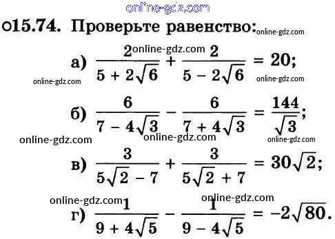 Готовые домашние задания по Алгебре за 8 класс Задачник Мишустина, Мордкович Базовый уровень 2015 - Параграф 15 74