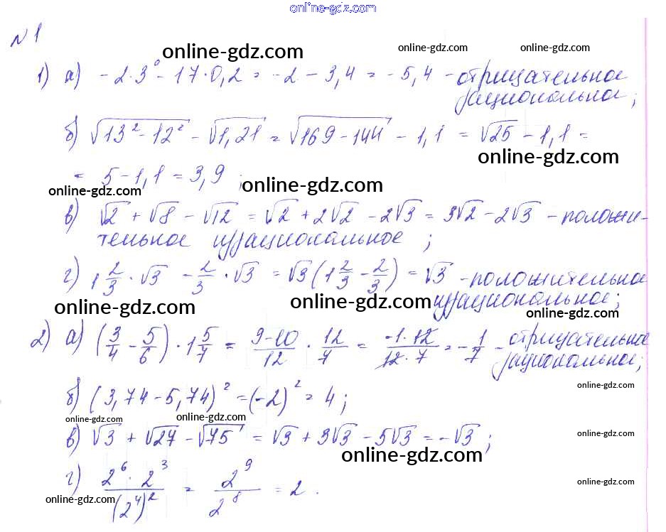 Готовые домашние задания по Алгебре за 9 класс Дидактические материалы Евстафьева, Карп 2017 - О-1. Действительные числа Обучающие работы 1