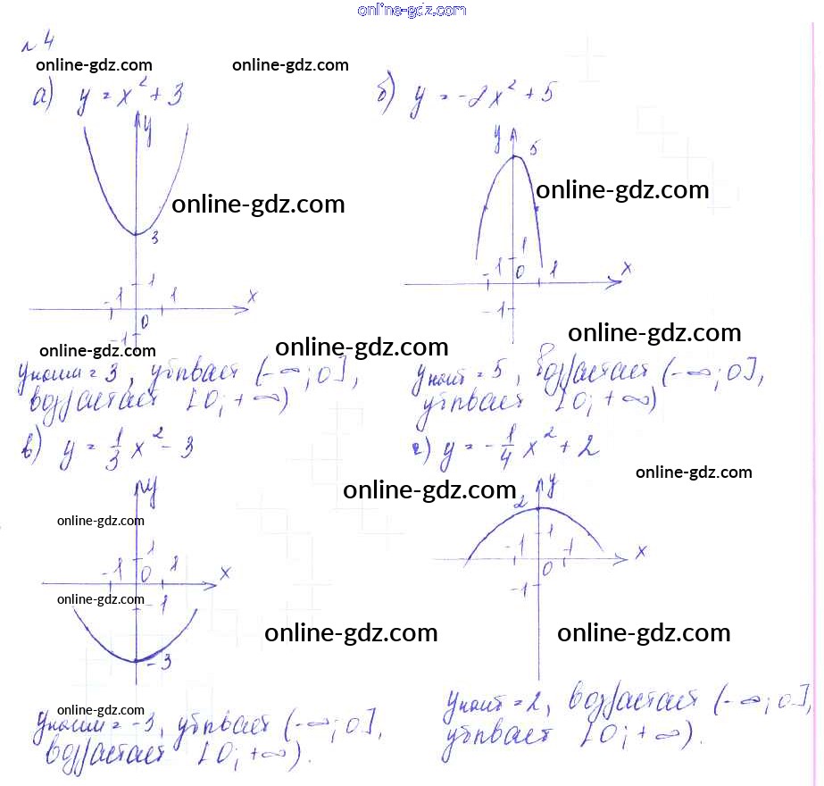 Готовые домашние задания по Алгебре за 9 класс Дидактические материалы Евстафьева, Карп 2017 - О-10. Сдвиг графика функции y = ax2 вдоль оси у Обучающие работы 4
