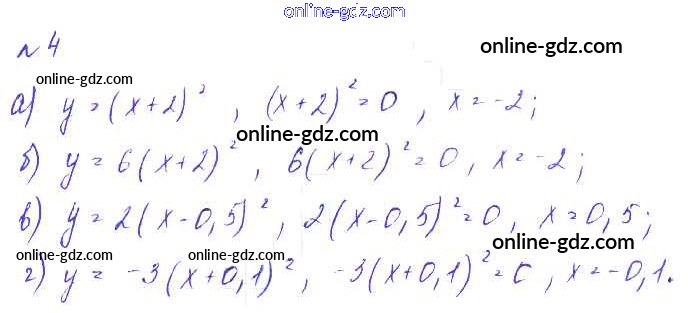Готовые домашние задания по Алгебре за 9 класс Дидактические материалы Евстафьева, Карп 2017 - О-11. Сдвиг графика функции y = ax2 вдоль оси х Обучающие работы 4