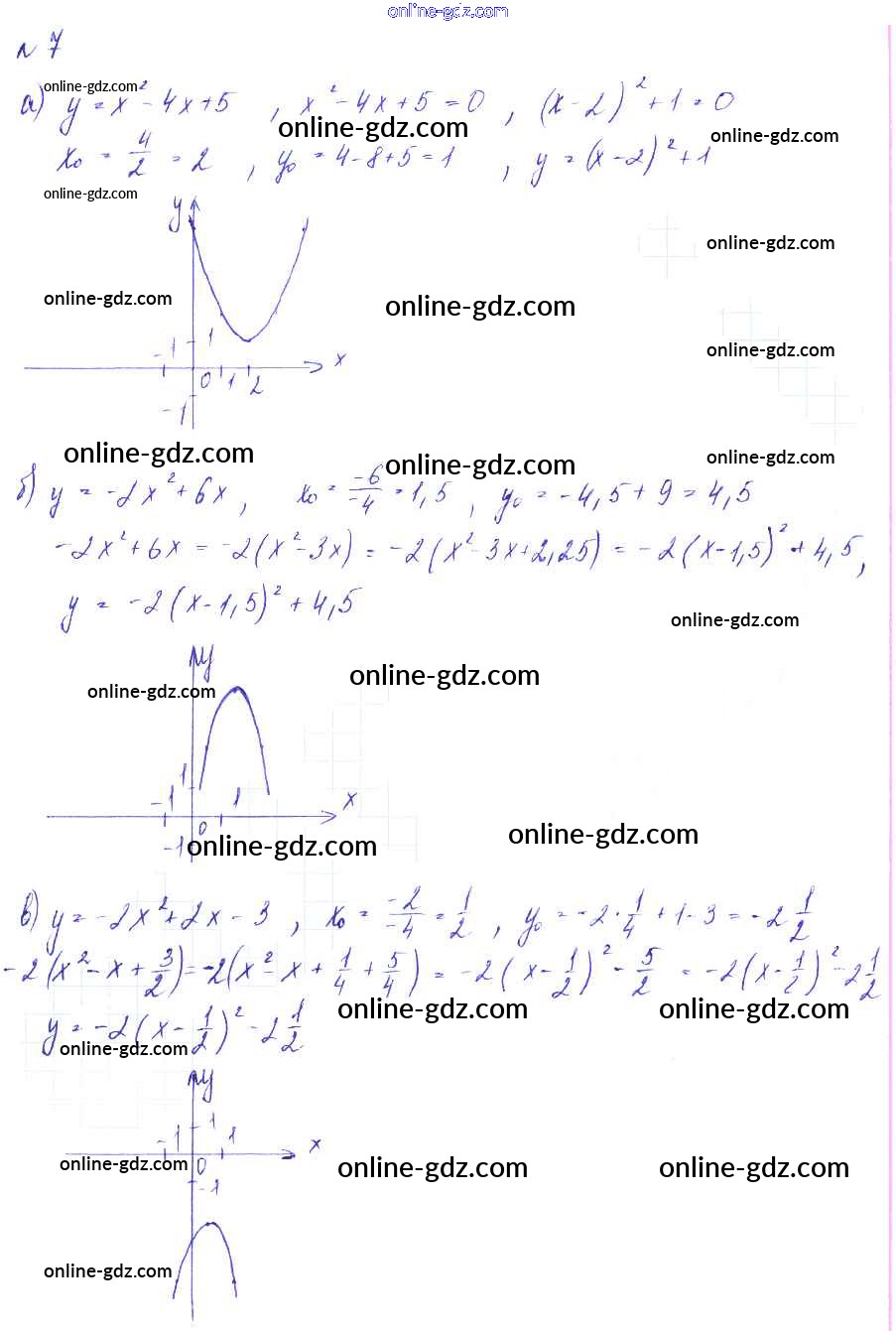 Готовые домашние задания по Алгебре за 9 класс Дидактические материалы Евстафьева, Карп 2017 - О-12. Сдвиг графика функции y = ax2 вдоль осей координат Обучающие работы 7