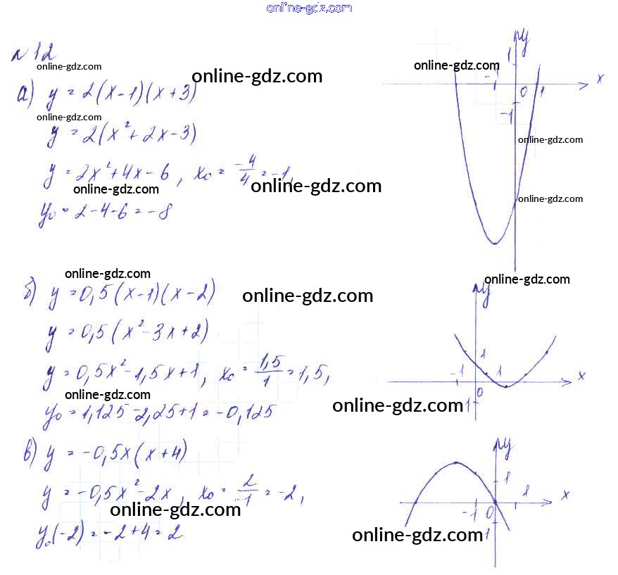 Готовые домашние задания по Алгебре за 9 класс Дидактические материалы Евстафьева, Карп 2017 - О-13. График функции y = ax2 + bx + c Обучающие работы 12