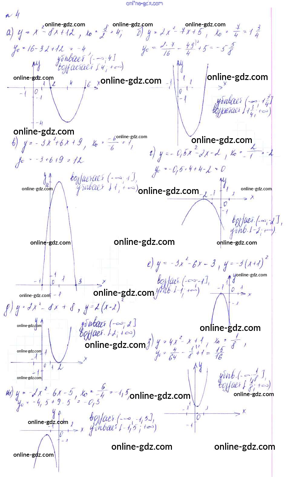 Готовые домашние задания по Алгебре за 9 класс Дидактические материалы Евстафьева, Карп 2017 - О-13. График функции y = ax2 + bx + c Обучающие работы 4