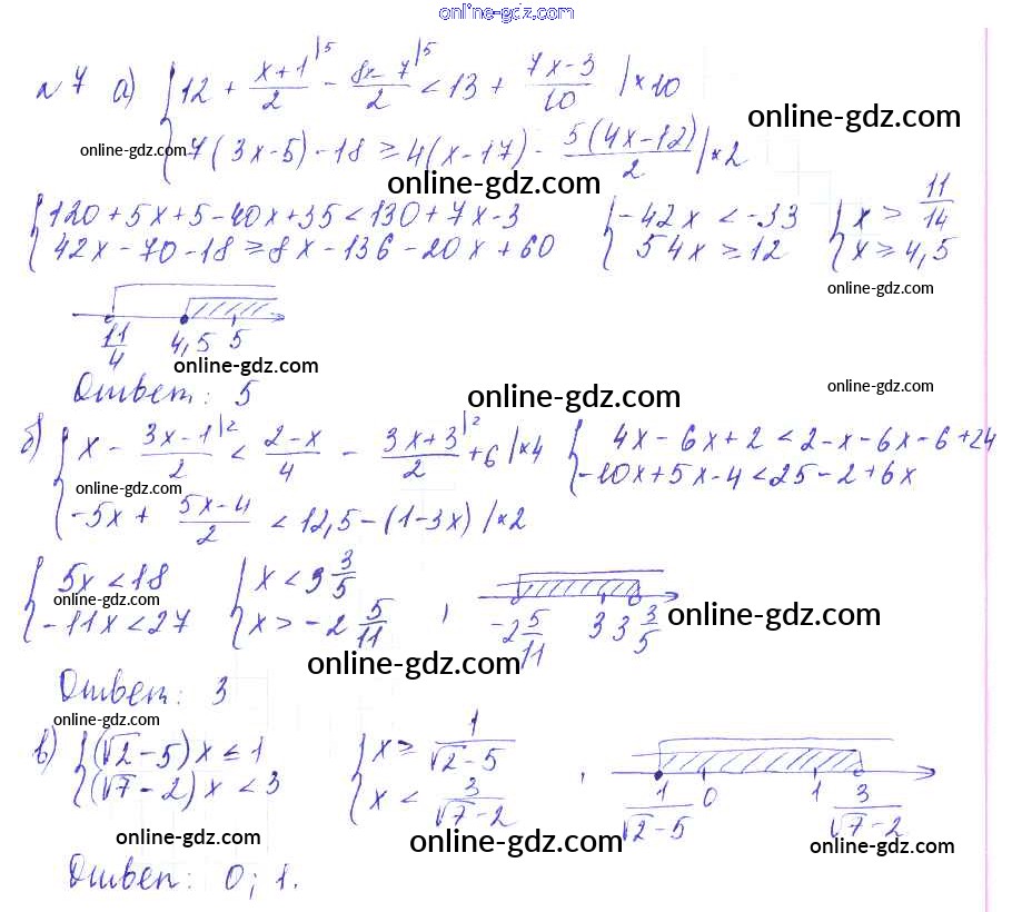 Готовые домашние задания по Алгебре за 9 класс Дидактические материалы Евстафьева, Карп 2017 - О-4. Решение систем линейных неравенств Обучающие работы 7