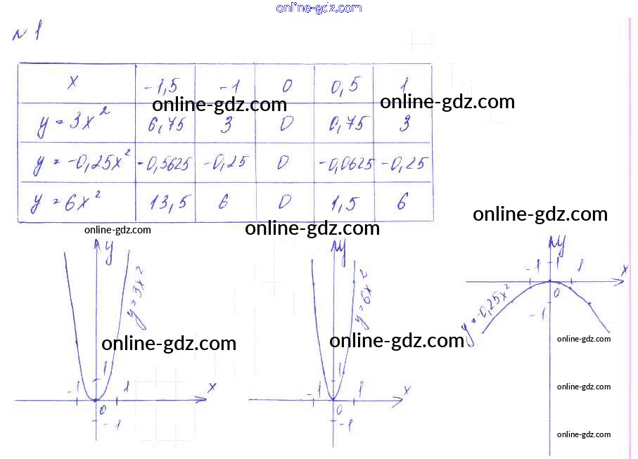 Готовые домашние задания по Алгебре за 9 класс Дидактические материалы Евстафьева, Карп 2017 - О-9. График и свойства функции y = ax2 Обучающие работы 1