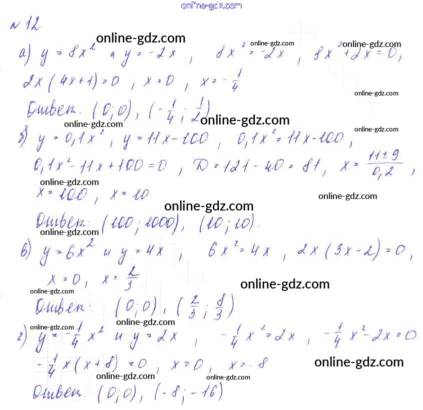 Готовые домашние задания по Алгебре за 9 класс Дидактические материалы Евстафьева, Карп 2017 - О-9. График и свойства функции y = ax2 Обучающие работы 12