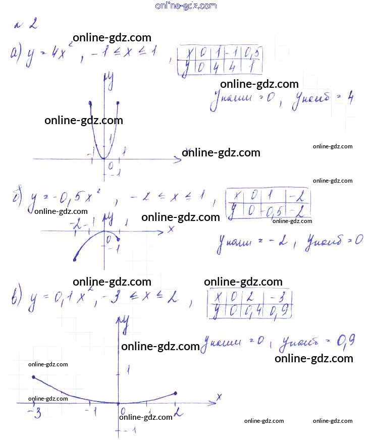 Готовые домашние задания по Алгебре за 9 класс Дидактические материалы Евстафьева, Карп 2017 - О-9. График и свойства функции y = ax2 Обучающие работы 2
