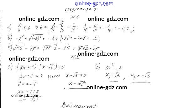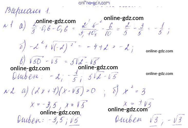 Готовые домашние задания по Алгебре за 9 класс Дидактические материалы Евстафьева, Карп 2017 - П-1. Действительные числа Проверочные работы Вариант 1