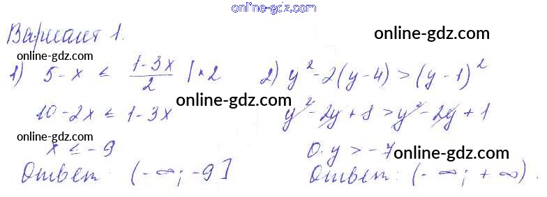 Готовые домашние задания по Алгебре за 9 класс Дидактические материалы Евстафьева, Карп 2017 - П-11. Решение линейных неравенств Проверочные работы Вариант 1