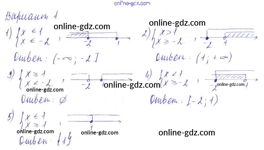 Готовые домашние задания по Алгебре за 9 класс Дидактические материалы Евстафьева, Карп 2017 - П-12. Решение систем линейных неравенств Проверочные работы Вариант 1
