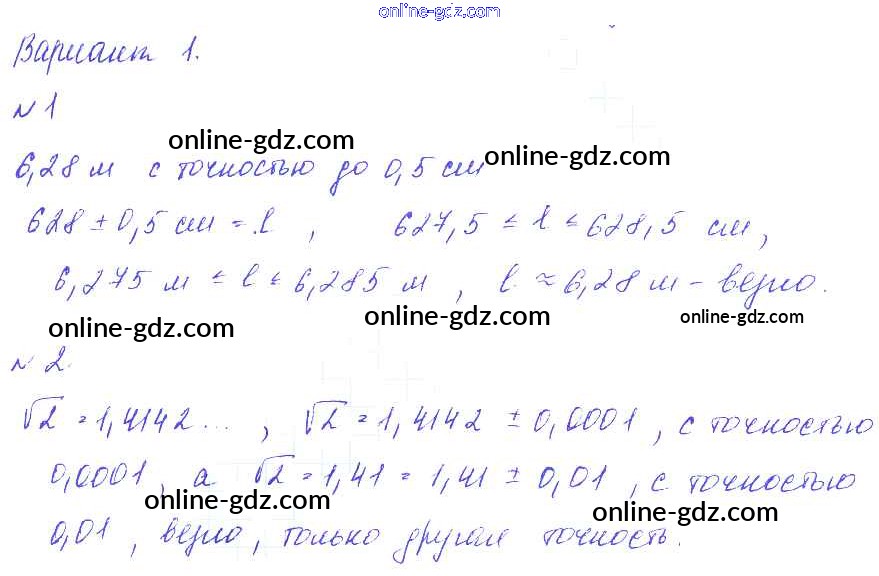 Готовые домашние задания по Алгебре за 9 класс Дидактические материалы Евстафьева, Карп 2017 - П-17. Измерение точностью до... Проверочные работы Вариант 1