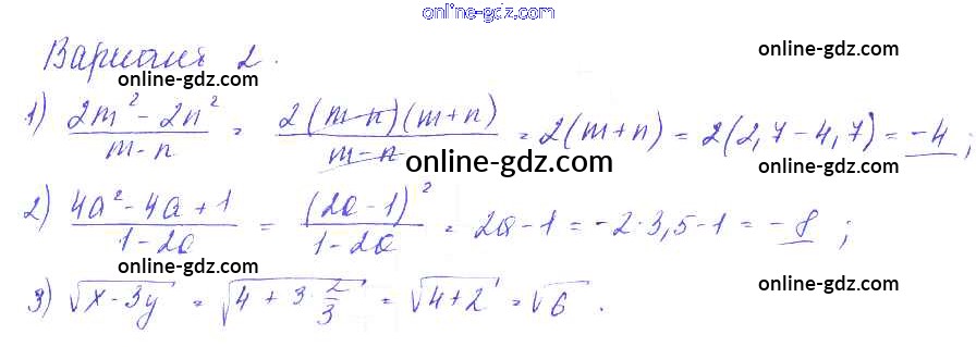 Готовые домашние задания по Алгебре за 9 класс Дидактические материалы Евстафьева, Карп 2017 - П-2. Действительные числа Проверочные работы Вариант 2