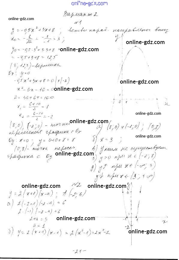Готовые домашние задания по Алгебре за 9 класс Дидактические материалы Евстафьева, Карп 2017 - П-21. График функции у = ах2 Проверочные работы Вариант 2