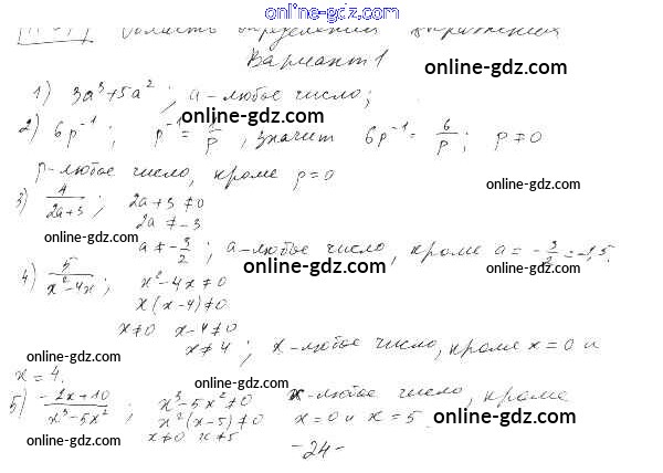 Готовые домашние задания по Алгебре за 9 класс Дидактические материалы Евстафьева, Карп 2017 - П-24. Область определения выражения Проверочные работы Вариант 1